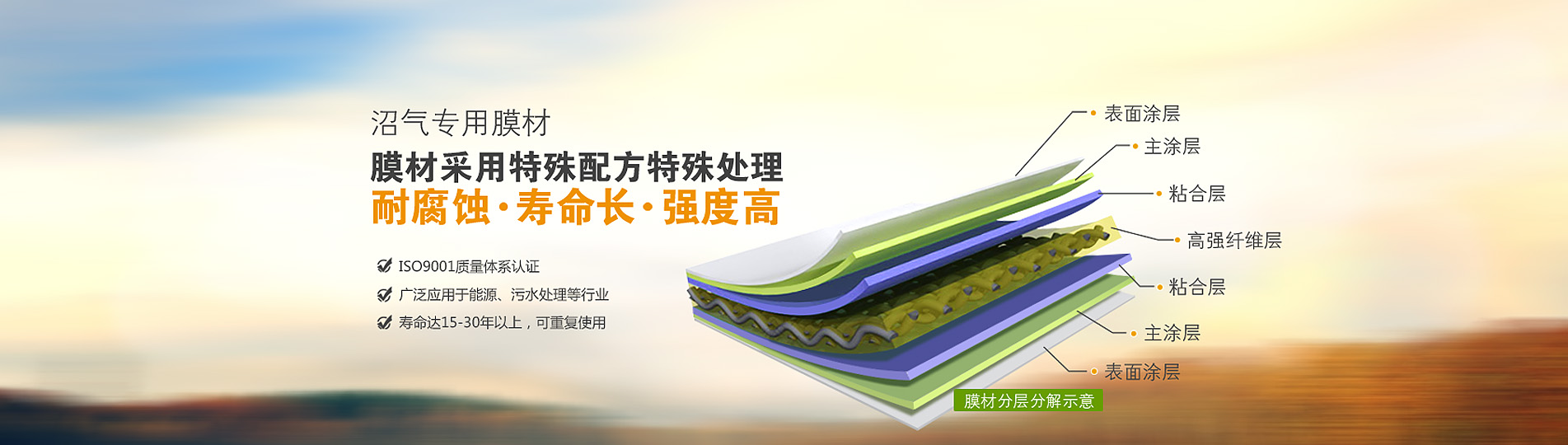 • 雙膜儲氣柜——養殖場行業污水處理沼氣工程中 近幾年,大中型沼氣工程是處理高濃度有機廢水,廢物,治理環境和生態農業建設必不可少的工程設施。它以畜禽糞便處理為主要目的,以厭氧消化為主要技術環節,以糞便資源化綜合利用為效益保障,集環保、能源、資源再利用為一體,將農林...